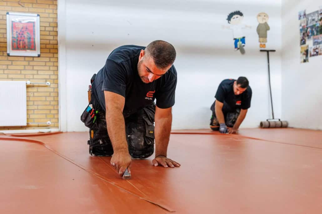 ”Hvis der er skader på gulvene, eller de simpelthen er blevet for slidte, så ringer jeg bare efter EC Gulve. De kommer og fjerner det gamle gulv, retter underlaget op med spartel og lægger et helt nyt og lækkert linoleumsgulv,” forklarer Mehmet.